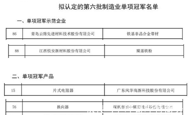 【哔哥哔特导读】第六批制造业单项冠军冠军产生,磁性元器件厂商能有几家入围呢?